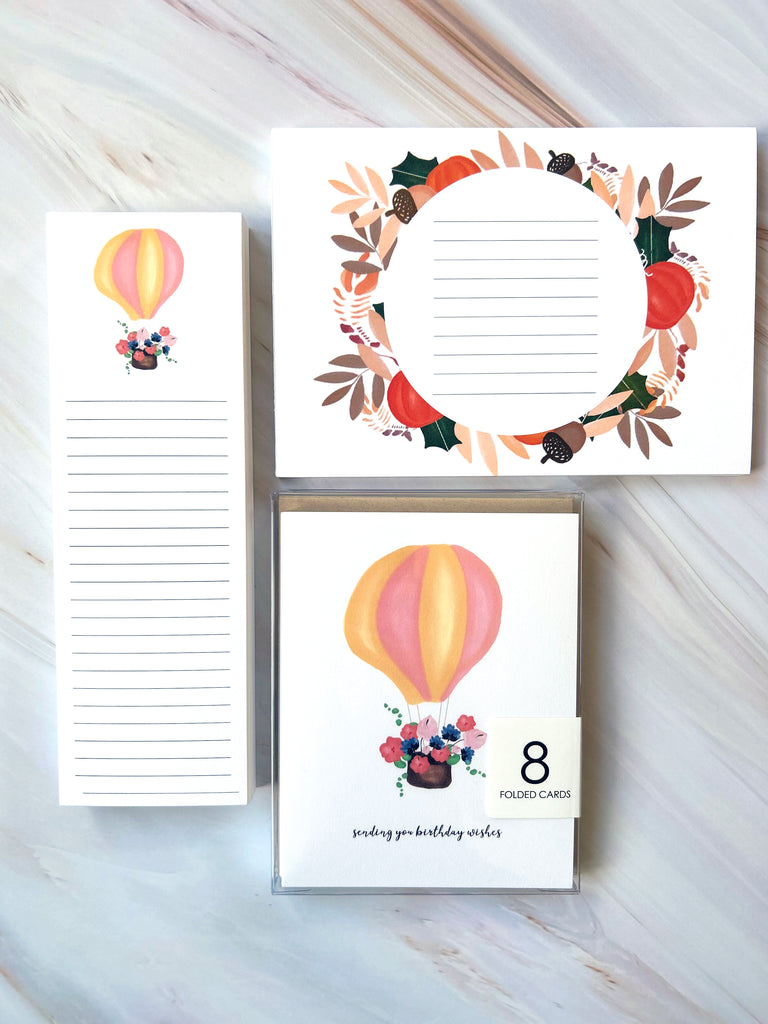 Our current Pocket Box includes our newest Note Pads & Boxed Stationery. We've also thrown in 3 Greeting Cards. This box will be available until November 20th. Want a Pocket Box shipped seasonally to you? That's also an option!